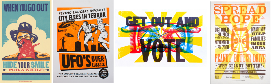 Visually stunning posters attract attention to events. DigitaLetterpress posters are amazingly simple, colorful, and break about every graphics design rule there is.